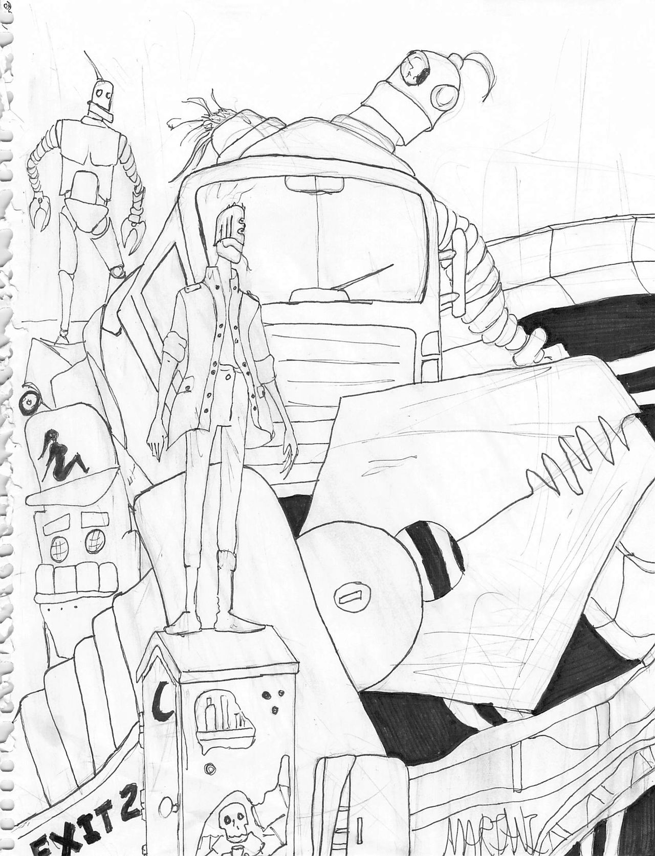 In the last image below, I shaded the characters in the style of Ghost Trick (I love the game, buy it when you have the chance).