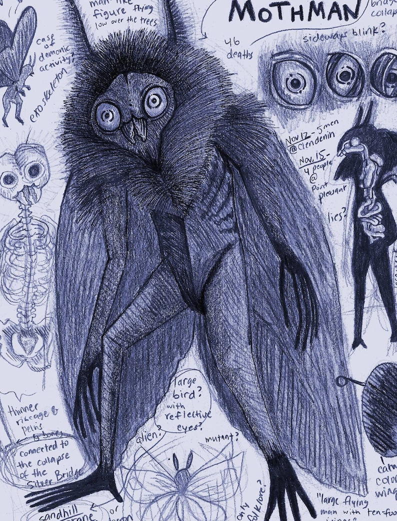 I've always had a fondness for the Flatwoods Monster of West Virginia. Now a part of this started because of the game The Legend of Zelda: Majora's Mask, as the alien enemies that invade Romani Ranch were based on the cryptid, but I didn't learn about the cryptid until years after playing the game. This lead me down a rabbit hole to discover the Flatwoods Monster is actually quite popular in Japan and shows up in quite a few Japanese video games, and there's just something about the way this monster looks that I find neat. Nowadays it's believed the Flatwoods Monster was nothing more than a large barn owl, especially since the description of "claws and a face shaped like the ace of spades" fits this specific owl species, but as someone who also likes ayyliens I just wanna believe.