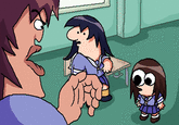 Osaka Shoe Kick is a YTMND fad based around a scene from the sixth episode of the Azumanga Daioh anime. After the character Osaka, who is known for being dim-witted, kicks her shoe off as a good weather charm (shown below, left), it accidentally falls on a truck which drives off with it. In June 2005, the first YTMND site[1] utilizing footage from this scene was created. By the next year, similar remixes began to appear on YouTube (shown below, right).