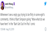 On January 14th, 2019, Redditor -Fateless posted the comic to the /r/Cringetopia[3] subreddit under the title "A Classic Meme from my Childhood: Bart, get out! I'm Piss!" The post received 138 upvotes and 41 comments in six months before the thread was archived.
