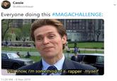On September 14th, 2019, Twitter user @SuriusVsVodka posted a video of himself wearing a variety of MAGA headgear and rapping about his support of the United States President Donald Trump (shown below).[1] In the tweet, @SuriusVsVodka asked other users to submit videos of themselves performing rap under hashtag #MAGACHALLENGE. The video accumulated over 2.9 million views in two months, with the tweet receiving over 10,000 retweets and 29,400 likes in the same period.